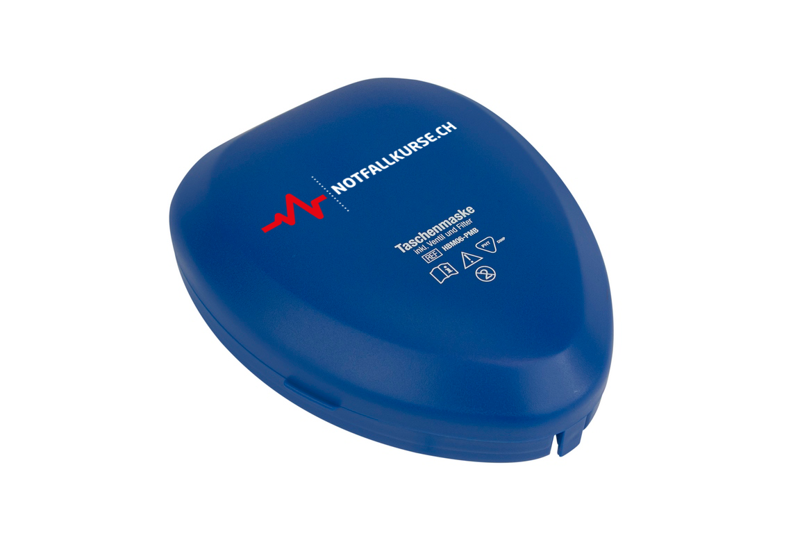 Die Taschenmaske bietet einen optimalen Abstand zwischen Patient und Helfer. Sie schützt so vor Erbrochenem und der Helfer kann sehen, ob sich der Brustkorb hebt oder senkt.
